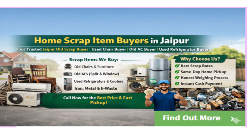 We are a trusted Jaipur Old Scrap Buyer, providing reliable and doorstep scrap collection services across Jaipur. Our aim is to make scrap selling easy, transparent, and profitable for homes, offices, shops, and industries. As professional Home Scrap Item Buyers in Jaipur, we ensure fair pricing, quick pickup, and eco-friendly recycling practices.